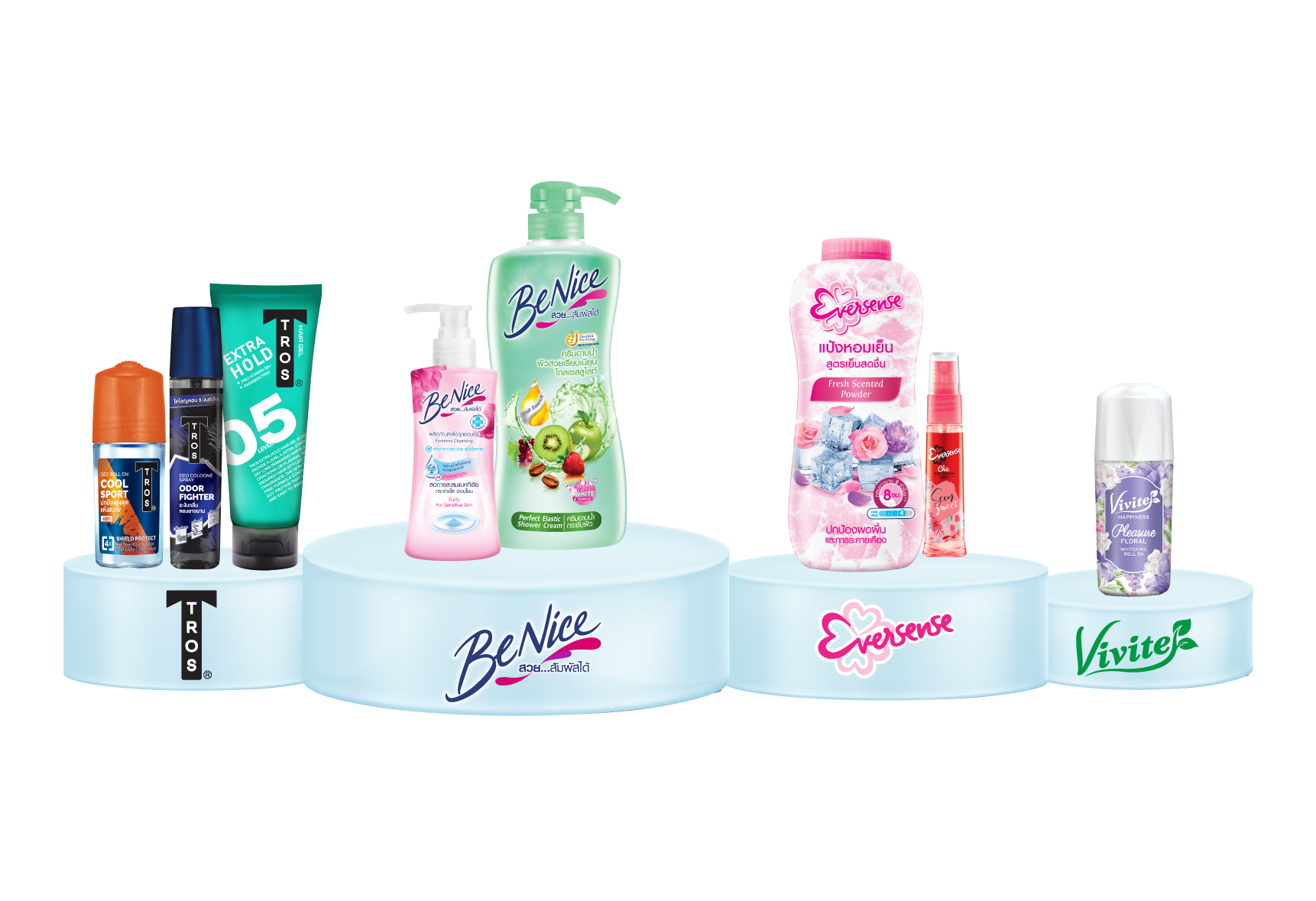 ในปีเดียวกันนี้เองก็ได้เปิดตัวสินค้าแรกออกสู่ตลาด ก็คือ ผลิตภัณฑ์โคโลญแบรนด์ "เอเวอร์เซ้นส์ (Eversense)" มีการวางจุดยืนชัดเจนว่าเป็นโคโลญสำหรับวัยรุ่นหญิง จับตลาดได้ตรงกลุ่มเป้าหมาย แตกต่างจากแบรนด์อื่นในตลาด ซึ่งใช้เวลาไม่นานก็ได้รับความนิยมอันดับ 1 ในกลุ่มสินค้าโคโลญสำหรับวัยรุ่นหญิง จากนั้นได้ออกสินค้าโคโลญ และโรลออนสำหรับผู้ชายภายใต้แบรนด์ "ทรอส (TROS)" เป็นโคโลญสำหรับผู้ชายแบรนด์แรกของประเทศไทย ประสบความสำเร็จครองอันดับ 1 มาตลอดจนถึงปัจจุบัน