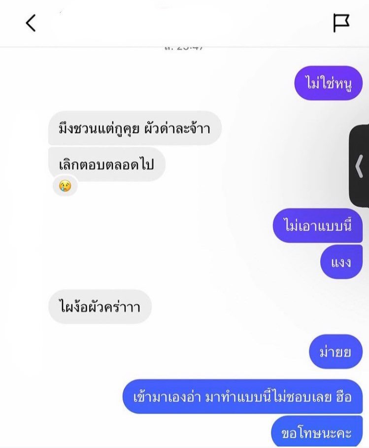 ด้าน 'แรปเปอร์' ก็ฟาดแรง "มึงชวนกูคุย ผัวด่าแล้วจ้า" พร้อมตัดความสัมพันธ์ "เลิกตอบตลอดไป" ขณะที่สาวมือที่สามรายนี้ ก็พยายามง้อแรปเปอร์ ก่อนที่แรปเปอร์จะถีบหัวส่งไล่เธอให้ไปง้อผัว