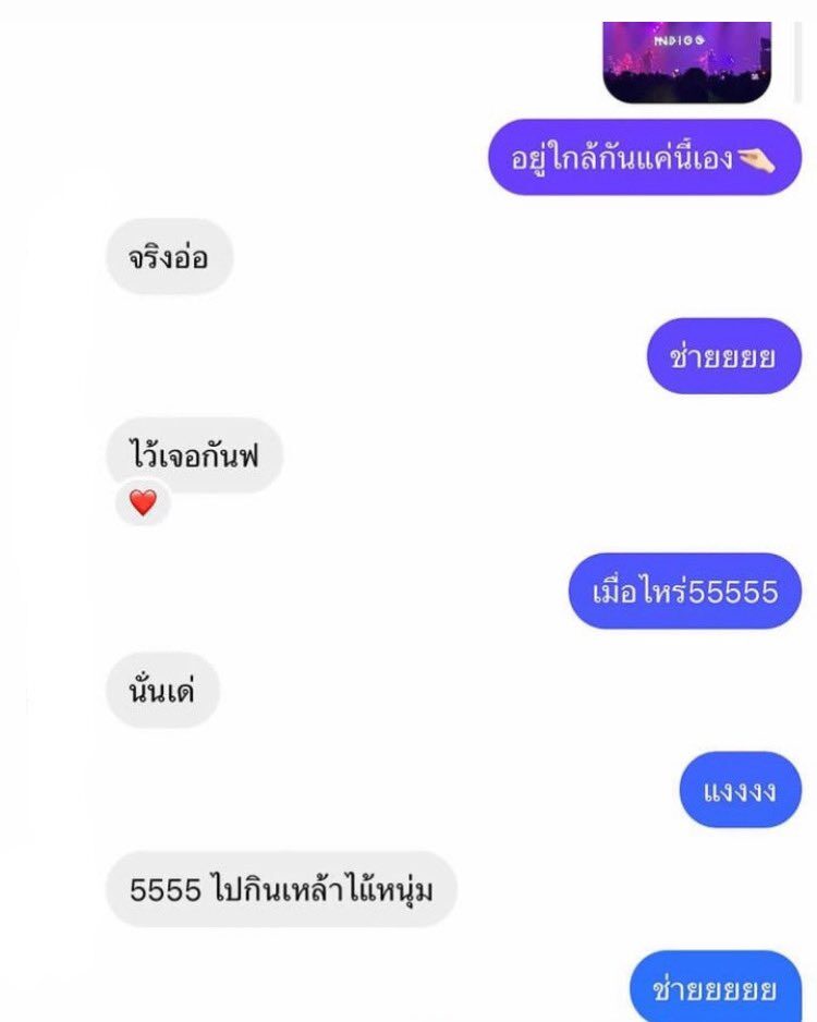 โดยภาพแชทมีการหยอกล้อพูดคุยกัน รวมไปถึงยังมีข้อความนัดแนะเพื่อพบเจอกันอีกด้วย