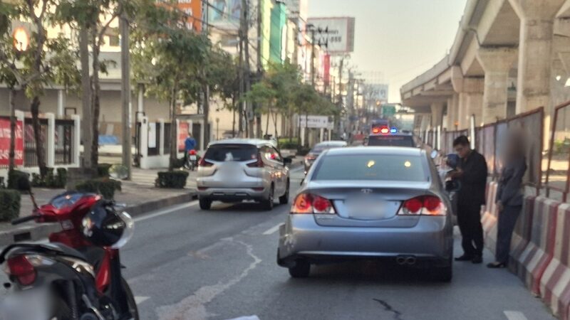 จากการสอบถามคนขับรถคู่กรณีชื่อ น.ส.ปวีณา (ขอสงวนนามสกุล) อายุ 28 ปี กล่าวว่า ตนขับรถคันดังกล่าว มุ่งหน้าถนนพระราม 2 ขาเข้า ซึ่งเป็นช่วงเช้า มีการจราจรติดขัด ทำให้รถขับเคลื่อนไปได้ช้า