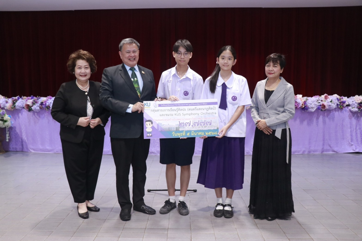 ดร.ดำรงค์ ศรีพระราม รักษาการแทนอธิการบดี มหาวิทยาลัยเกษตรศาสตร์ รับมอบเงินบริจาคเพื่อสมทบทุนการก่อสร้างอาคารโรงพยาบาลเกษตรศาสตร์ โครงการอุทยานกรแพทย์มหาวิทยาลัยเกษตรศาสตร์ จากคณะครูและนักเรียนโรงเรียนสาธิตแห่งมหาวิทยาลัยเกษตรศาสตร์ ศูนย์วิจัยและพัฒนาการศึกษา