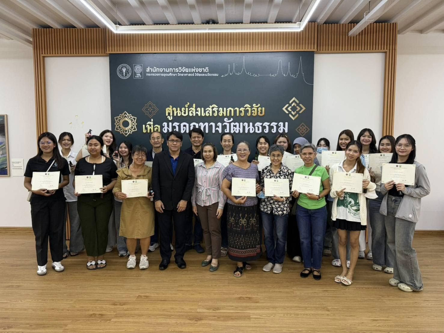 สำนักงานการวิจัยแห่งชาติ (วช.) จัดอบรมสาธิตวิธีการทำ "DIY การทำแชมพูฟ้าทะลายโจรสมุนไพร มรดกท้องถิ่นภาคกลาง" ให้กับยาวชน นักเรียน นักศึกษา รวมถึงประชาชนทั่วไปที่สนใจเข้าร่วมกิจกรรมฟรีไม่มีค่าใช้จ่าย โดยมี รศ.ดร.ดุสิต อธินุวัฒน์ และทีมนักวิจัย จากมหาวิทยาลัยธรรมศาสตร์ ได้ถ่ายทอดการทำแชมพูฟ้าทะลายโจรแบบ DIY สามารถต่อยอดเป็นอาชีพเสริม เพิ่มมูลค่าให้กับสมุนไพรท้องถิ่นได้อย่างยั่งยืน