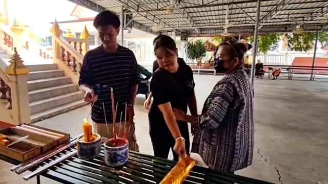 น.ส.อารยา หรือ น้ำตาล อายุ 21 ปี ลูกสาวของผู้ตาย พร้อมด้วยญาติพี่น้อง ต่างพากันจุดธูปเคารพศพผู้ตาย พร้อมเปิดเผยว่า ตนรับศพของแม่เดินทางถึงวัดใน อ.ชุมแพ เมื่อเวลา 22.00 น.ที่ผ่านมา และจะตั้งสวดอภิธรรมศพ 1 คืน จากนั้นก็จะเผาศพแม่วันที่ 4 เม.ย.นี้