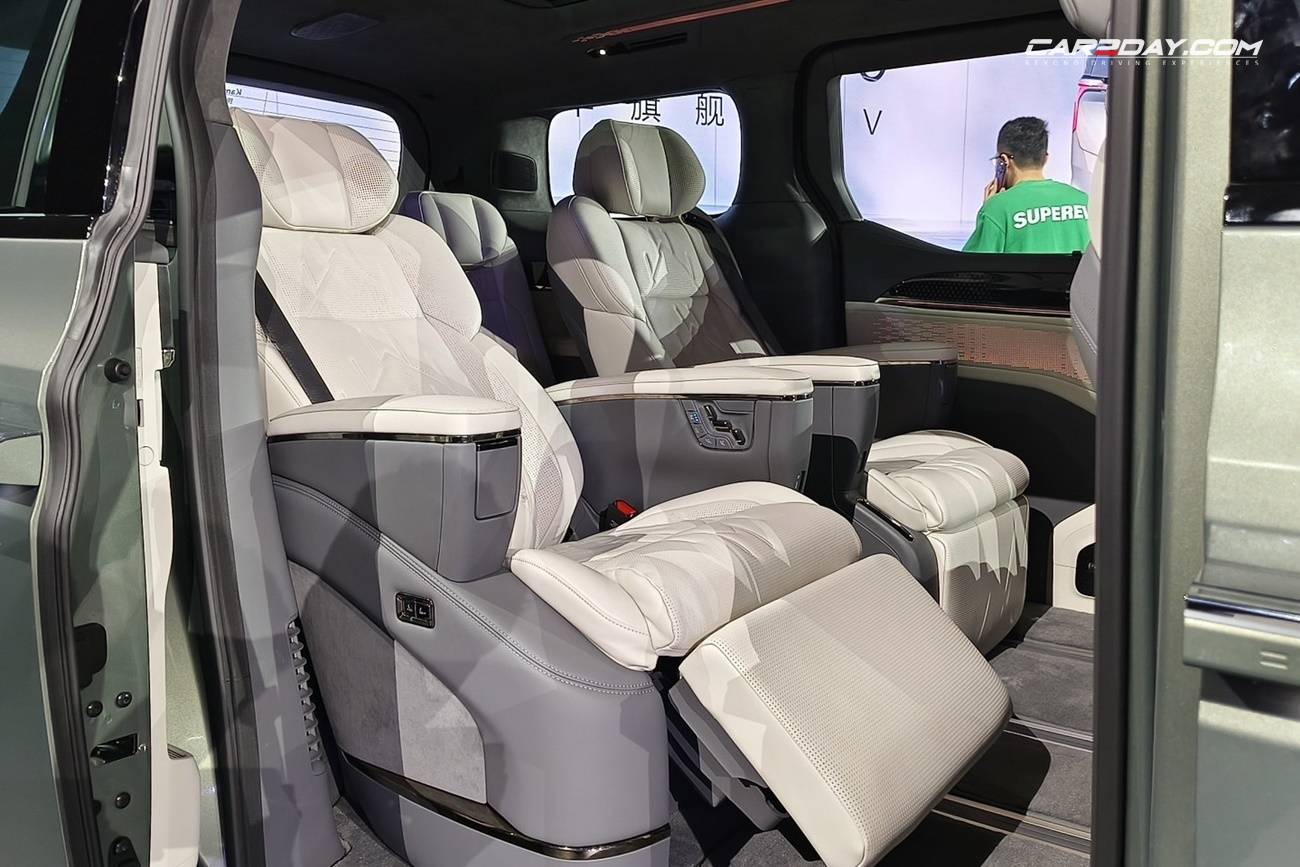 มีทั้งรุ่น 6 ที่นั่งแบบ 2+2+2 โดยเบาะนั่งตอนที่สองแบบ VIP lounge รุ่น 7 ที่นั่งแบบ 2+2+3 โดยเบาะนั่งตอนที่ 2 มาในแบบ Sofaro first-class airline seats และยังสามารถให้เบาะตอนที่ 2 อยู่ชิดกันหริอแยกกันเป็นทางเดินตรงกลางเข้าไปนั่งเบาะตอนที่ 3 ได้โดยมาในแบบ 3 ที่นั่ง ทั้งสองรุ่นมาพร้อมระบบระบายอากาศ มีโต๊ะพับสำหรับนั่งทำงาน ปรับด้วยไฟฟ้า 12 จุด พร้อมนวด