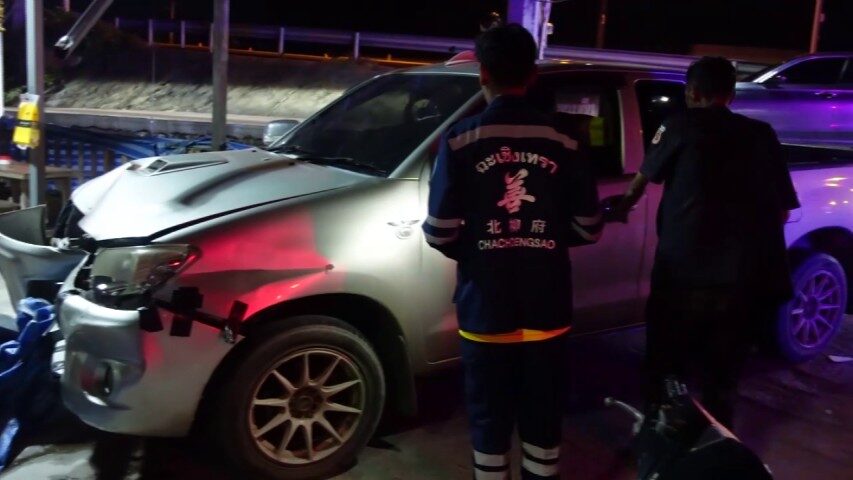 เมื่อกลางดึกวันที่ 6 ก.ย.2567 พ.ต.ท.อาทิตย์ สุนทวนิค สว.(สอบสวน) สภ.บางปะกง จ.ฉะเชิงเทรา พร้อมหน่วยกู้ภัยฉะเชิงเทรา ตรวจสอบเหตุรถกระบะพุ่งเข้าไปในร้านก๋วยเตี๋ยว บริเวณทางลงจุดกลับใต้สะพานคลองจางวาง ริมถนนสิริโสธร ขาเข้าฉะเชิงเทรา หมู่ 2 ต.หนองจอก อ.บางปะกง จ.ฉะเชิงเทรา