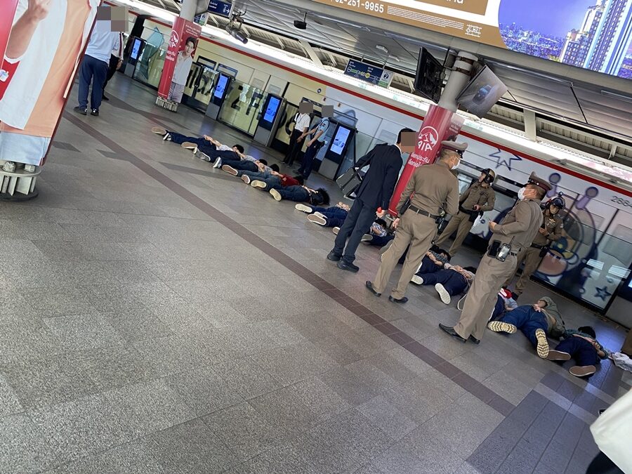 เหตุการณ์ระทึกกลางเมือง! เด็กช่างยกพวกไล่ตีกันบนรถไฟฟ้า กลางวันแสกๆ ทำผู้ใช้บริการคนอื่นๆขวัญเสีย หวั่นอันตราย สุดท้ายโดนตำรวจรวบ