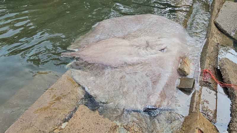 สลด พบซากกระเบนราหู ใหญ่กว่า 2 เมตร ริมทะเลดอนหอยหลอด น่าเศร้าหางถูกตัด