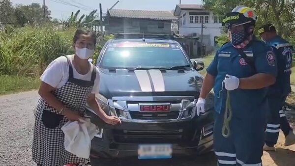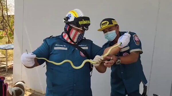 ที่เกิดเหตุพบกับ นางรุ่งนภา (ขอสงวนนามสกุล) อายุ 54 ปี แม่ค้าขายผัดไทโบราณกรุงเก่า ยืนอยู่หน้าบ้านในอาการหวาดกลัว พร้อมกับพาเจ้าหน้าที่ไปที่ห้องพระ ที่ปิดประตูหน้าต่างไว้อย่างมิดชิด ขังงูเอาไว้เพราะกลัวงูจะหนีออกไปก่อนที่เจ้าหน้าที่จะมาถึง
