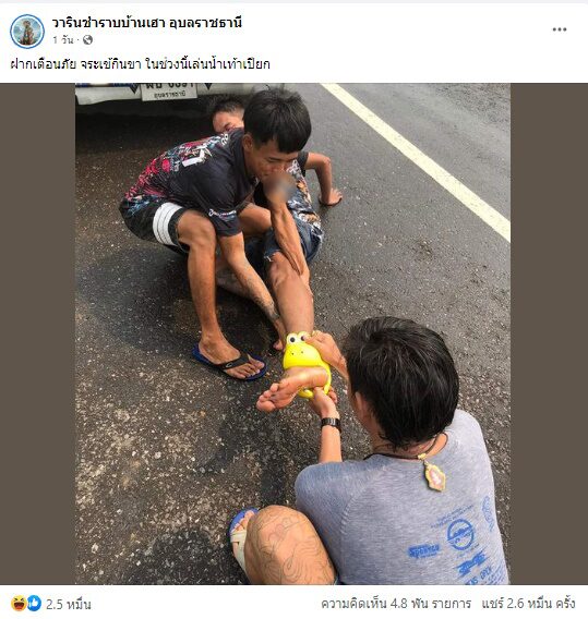 กลายเป็นไวรัลในวันสงกรานต์ เมื่อแฟนเพจ เฟซบุ๊ก"วารินชำราบบ้านเฮา อุบลราชธานี" ได้ออกมาโพสต์ภาพบรรยากาศงานสงกรานต์ พร้อมทั้งเตือนภัยการใส่รองเท้า โดยเฉพาะการรองเท้าเป็นรูปจระเข้