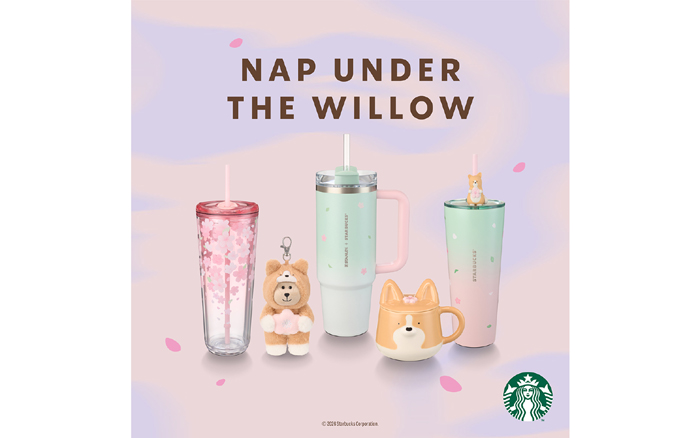 คอลเลกชันดริ๊งก์แวร์ Nap Under The Willow ถ่ายทอดความอบอุ่นผ่านเรื่องราวของสุนัขพันธุ์คอร์กี้แสนน่ารัก ที่กำลังงีบหลับอย่างผ่อนคลายใต้ร่มไม้ โดดเด่นด้วยโทนสีชมพูเสริมด้วยสีเขียวพาสเทล พร้อมลวดลายกลีบดอกซากุระปลิวไหว ให้ความรู้สึกอ่อนโยนและชวนให้รู้สึกผ่อนคลาย
