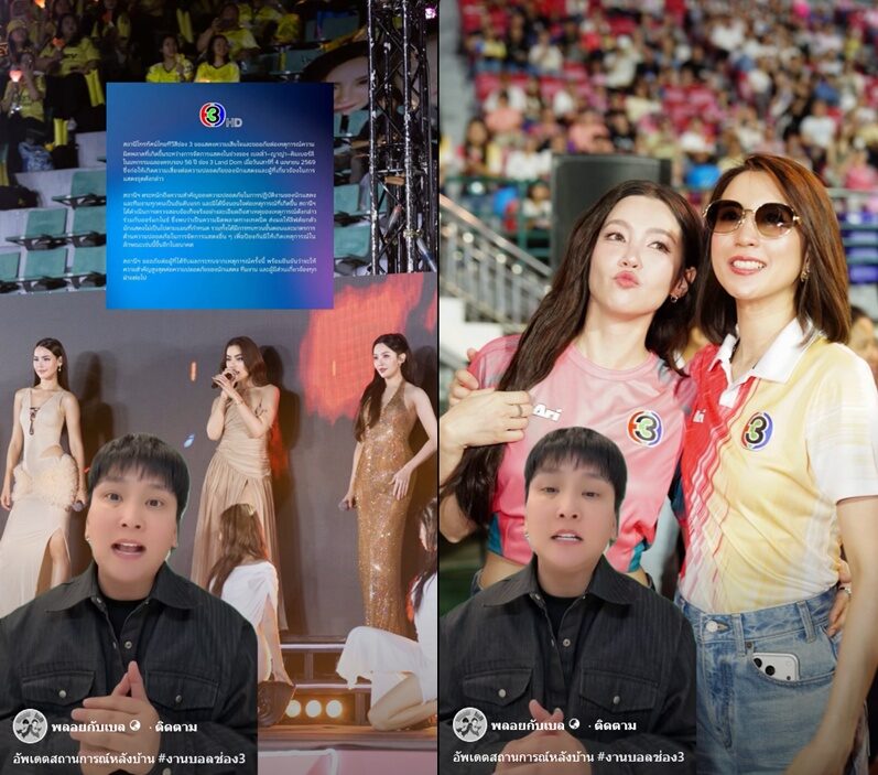 “โดยเนื้อหาแถลงการณ์ช่อง3ได้กล่าวถึงชื่อของนักแสดงทั้ง 3 ท่าน พร้อมทั้งขอโทษกับเหตุการณ์ที่เกิดขึ้น และรับปากกับประชาชนว่า จะดูแลสวัสดิภาพนักแสดงให้ดียิ่งๆขึ้นไป”
