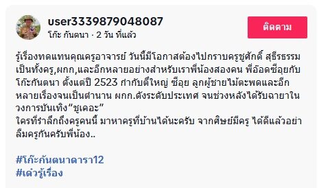 อ่านข่าวต้นฉบับได้ที่ : กราบทดแทนคุณครูอาจารย์ ซีอุย ในตำนานรุดเยี่ยม ชูเคอะ ผกก.ดัง ไม่ลืมกัน