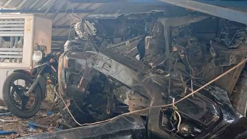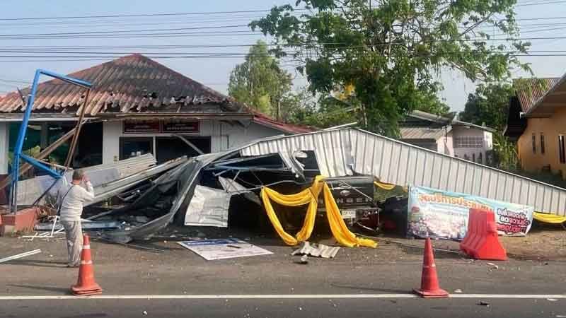 สุดระทึก กระบะวูบหลับใน เหินฟ้าพุ่งชนป้อมตำรวจ พังยับ หลังคาถล่ม ด.ต.รอดหวุดหวิด
