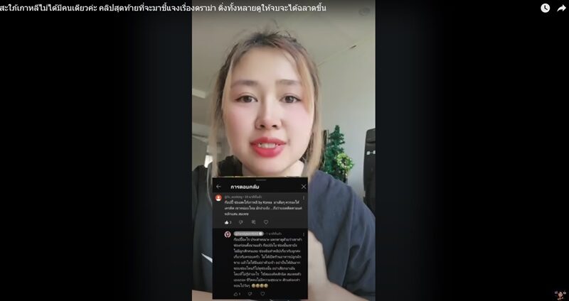 ไม่เหมือนใครบางคน แก่ๆ ยาวๆ ขายหมด เหมือนกับว่าไม่มีเงิน แล้วแบบทำตัวลำบากมาก ฉันไม่เคยออกมาพูดว่าฉันเกาเหลากับเขามาก่อน เมื่อก่อนเขาเป็นพี่สาวที่น่ารัก เป็นที่ปรึกษาทำยูทูบ ถามเรื่องทำคลิป ฉันก็แนะนำทุกอย่างแต่พอเขาดัง หน้ามือเป็นหลังตีน