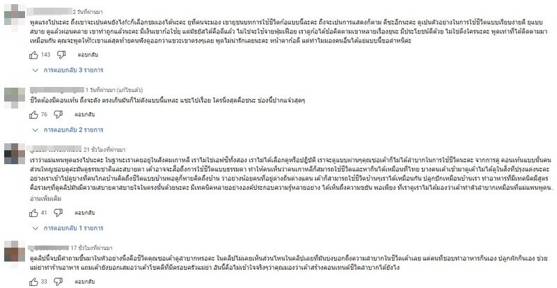 แพน ยังคอมเมนต์ใต้คลิปอีกว่า “ไม่วายยังมีติ่งบอกว่าฉันไปอิจฉาเขา โอ๊ยถ้าอิจฉาฉันก็คงอิจฉาทั้ง YouTube แหละเพราะว่ามีคนดังๆเยอะแยะ ที่เขาเป็นธรรมชาติจริงๆสะใภ้หลายๆประเทศที่เขาน่ารักก็มี ฉันก็ติดตามทุกคน ไม่จำเป็นต้องอิจฉาความลำบากหรอก