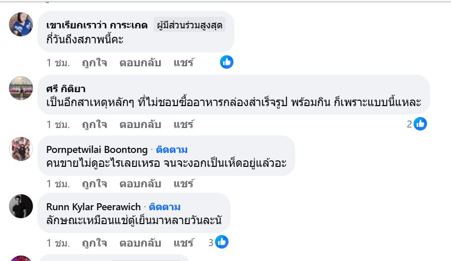 ทำให้มีผู้เข้ามาแสดงความคิดเห็นเป็นจำนวนมาก เช่น "ใยขึ้นขนาดนี้แล้วกี่วันแล้วเนี่ย", "คนขายไม่ดูอะไรเลยเหรอ จนจะงอกเป็นเห็ดอยู่แล้วอะ", "เป็นอีกสาเหตุหลักๆ ที่ไม่ชอบซื้ออาหารกล่องสำเร็จรูป พร้อมกิน ก็เพราะแบบนี้แหละ"
