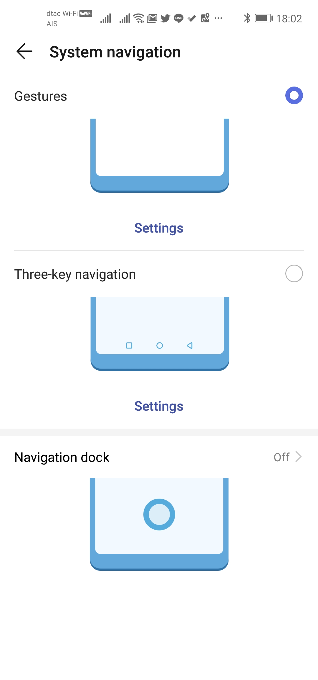 เมื่อสมาร์ตโฟนแข่งกันยึดพื้นที่ด้านหน้าให้แสดงหน้าจอได้มากที่สุด แล้วทำไมเราจะต้องมีปุ่ม Back, Home, Recent App มาวางค้างอยู่ที่หน้าจอล่ะครับ ใน EMUI 9.0 เราสามารถปิด 3 ปุ่มนี้ทิ้งไปเลย แล้วใช้การปาดหน้าจอหรือที่เรียกว่า Gestures Control มาทำงานแทน โดยเข้าไปที่ Settings -> System -> System navigation แล้วเลือกเป็น Gestures เจ้าปุ่มอมตะ 3 ปุ่มด้านล่างของแอนดรอยด์ก็จะหายไปครับ แล้วเราจะสั่งงานด้วยการปาดจากขอบจอแทนแบบนี้