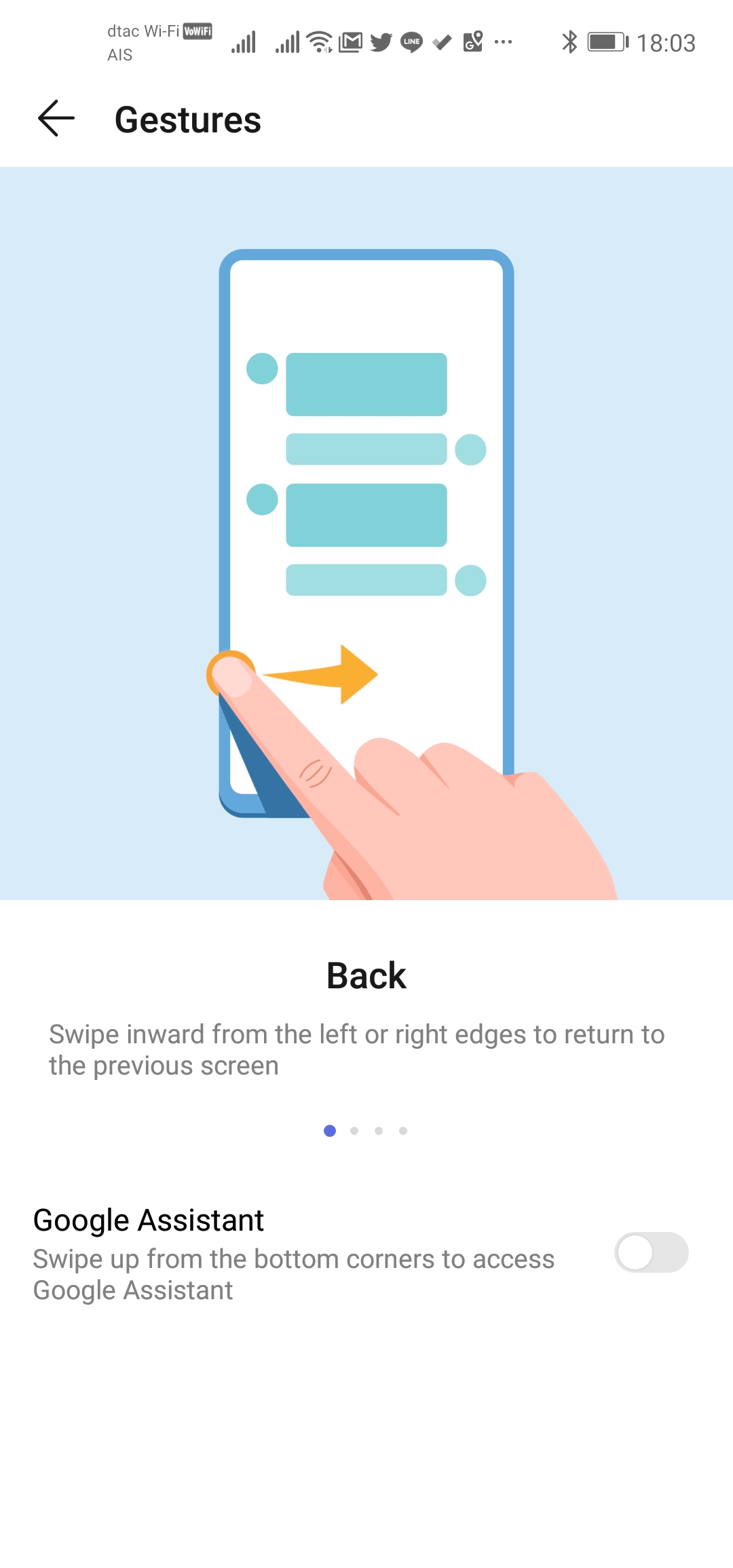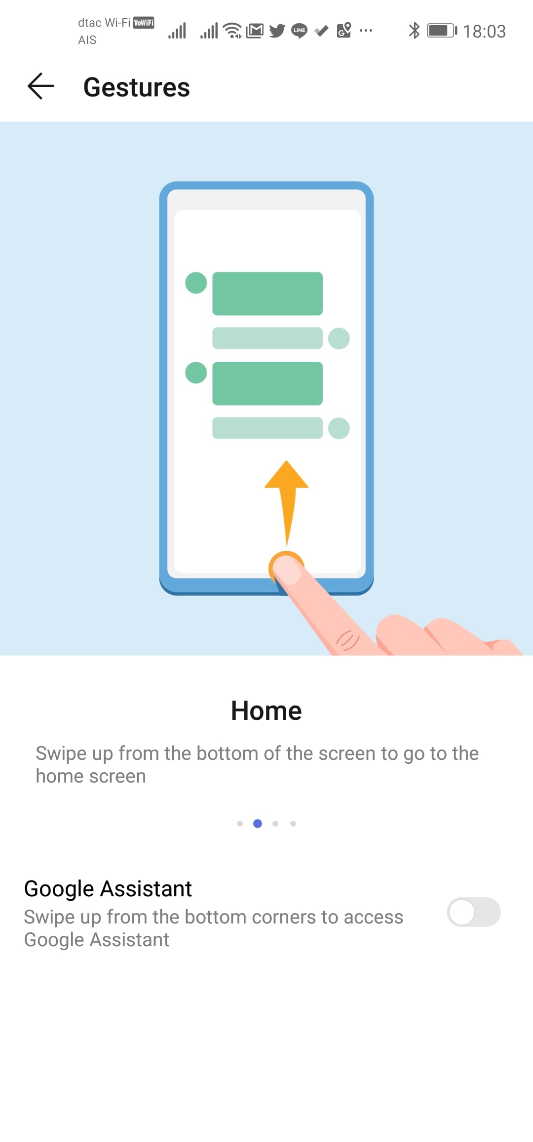 - ลากจากขอบจอล่างฝั่งซ้ายหรือขวาเพื่อเรียก Google Assistant (สามารถปิดได้ถ้าไม่ต้องการใช้)