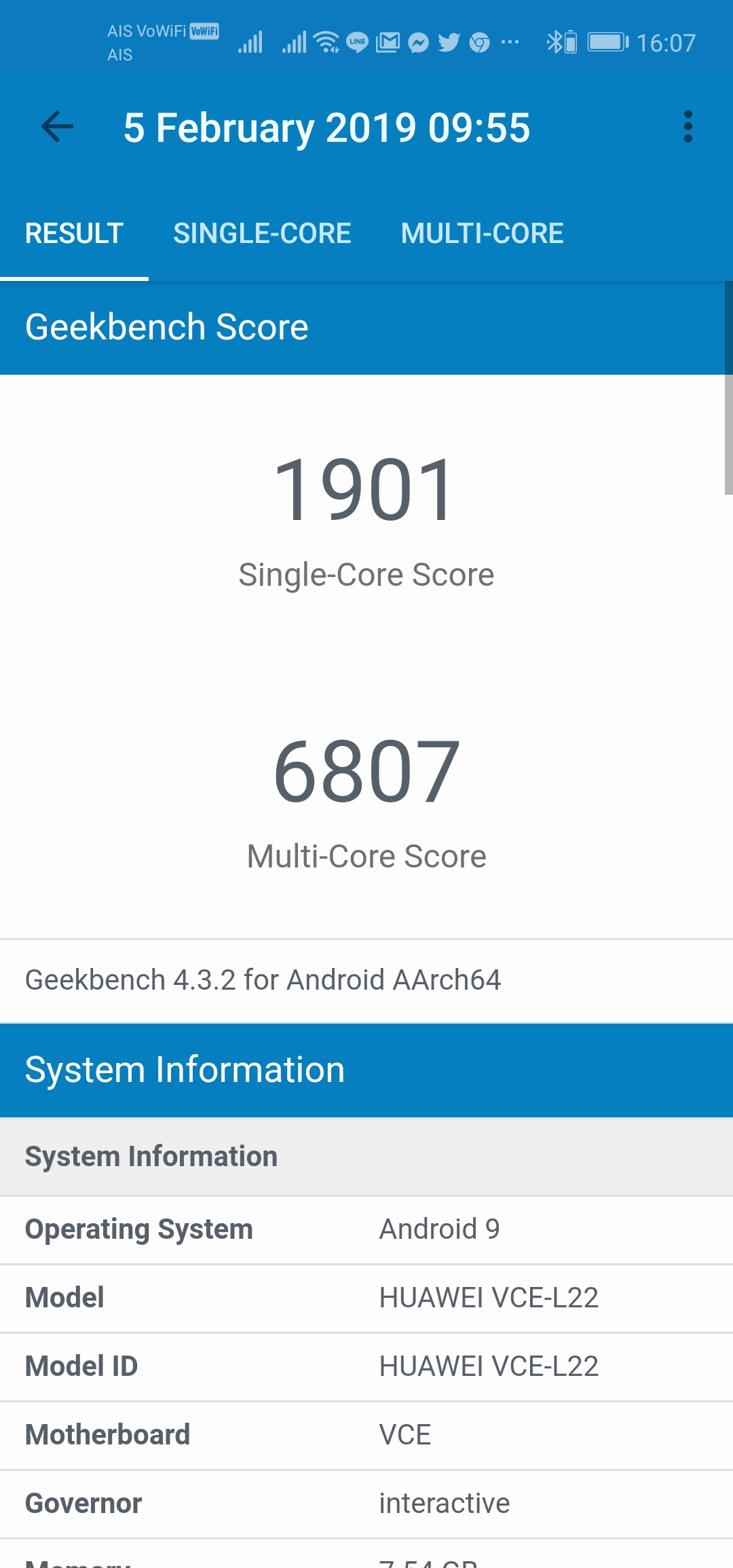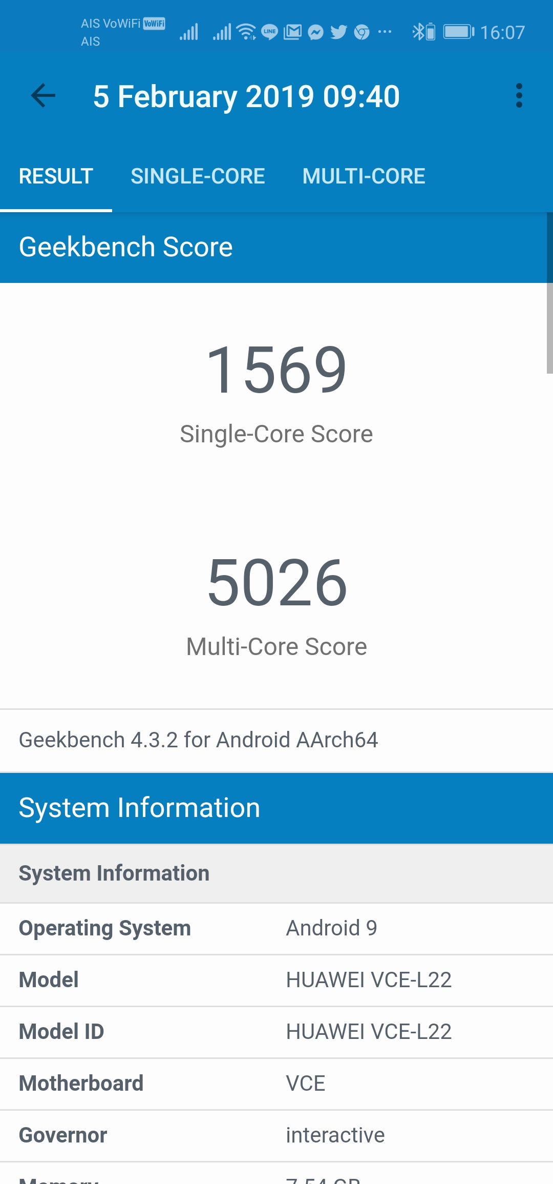 GeekBench 4 ใน Performance Mode