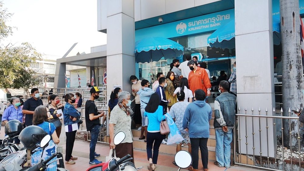 ซึ่งบรรยากาศมีประชาชน ส่วนใหญ่จะเป็นผู้สูงอายุมาต่อคิวเพื่อลงทะเบียนรับสิทธิ์ ตั้งแต่ช่วงเช้า ทั้งนี้ประชาชนที่เดินทางมาลงทะเบียน จะต้องนำบัตรประชาชนแบบสมาร์ทการ์ด ที่ไม่หมดอายุ ให้นำไปใช้ประกอบการลงทะเบียนขอรับสิทธิ์โครงการฯ โดยต้องพิสูจน์และยืนยันตัวตนด้วยการเสียบบัตรประจำตัวประชาชน ผ่านเครื่องรูดบัตรอิเล็กทรอนิกส์ (EDC) พร้อมกำหนดรหัส ได้ที่สาขาของธนาคารกรุงไทย หรือจุดบริการที่ธนาคารกรุงไทยกำหนด