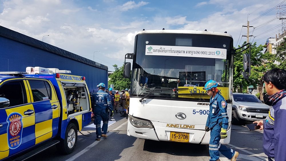มีผู้เสียชีวิตอยู่ใต้ท้องรถประจำทาง เป็นหญิง 1 ราย ทราบชื่อ น.ส.ชลธิชา ( ขอสงวนนามสกุล ) อายุ 26 ปี สวมใส่กางเกงขาสั้นสีดำ เสื้อยืดแขนสั้น สีดำ มีบาดแผลจากการถูกล้อทับแผลฉกรรจ์ขนาดใหญ่