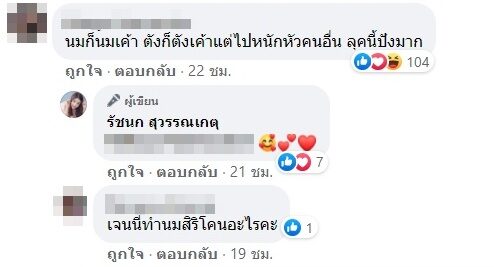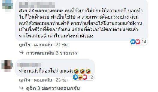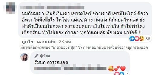 ขณะที่ชาวเน็ตและแฟนคลับก็เข้าไปคอมเมนต์ตอบโต้กันดุเดือด เช่น นมก็นมเค้า ตังค์ก็ตังค์เค้าแต่ไปหนักหัวคนอื่น , ทำมาแล้วก็ต้องโชว์ ถูกแล้ว