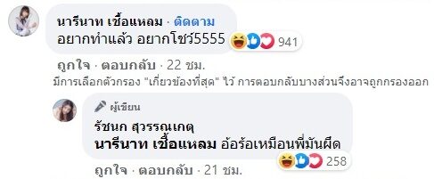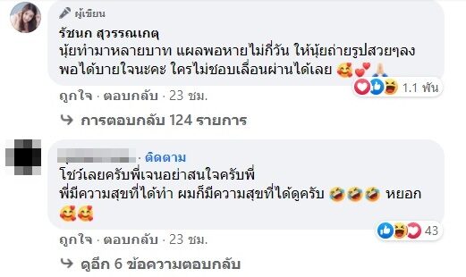 ด้าน ลิลลี่ ได้หมดถ้าสดชื่น น้องสาวก็ยังเข้ามาคอมเมนต์แซวว่า อยากทำแล้ว อยากโชว์ ซึ่งพี่สาวก็คอมเมนต์ตอบเป็นภาษาใต้ว่า อ้อร้อเหมือนพี่มันผึด