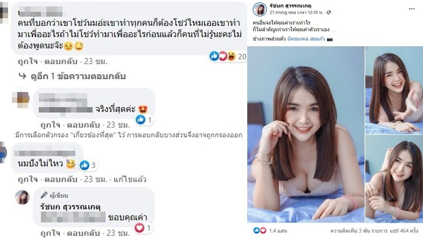 ลั่นนมปังไม่ไหวสวยเซ็กซี่ไม่วายโดนแซะตัดพ้อทำมาหลายบาทแผลหายไม่กี่วันขอถ่ายรูปสวยๆบ้าง เจนนี่ ได้หมดถ้าสดชื่น รัชนก สุวรรณเกตุ ความสวยเข้าที่เข้าทางมากแล้วหลังจากศัลยกรรมมาสวยปัง โดยการเสริมหน้าอกและทำตาสองชั้น