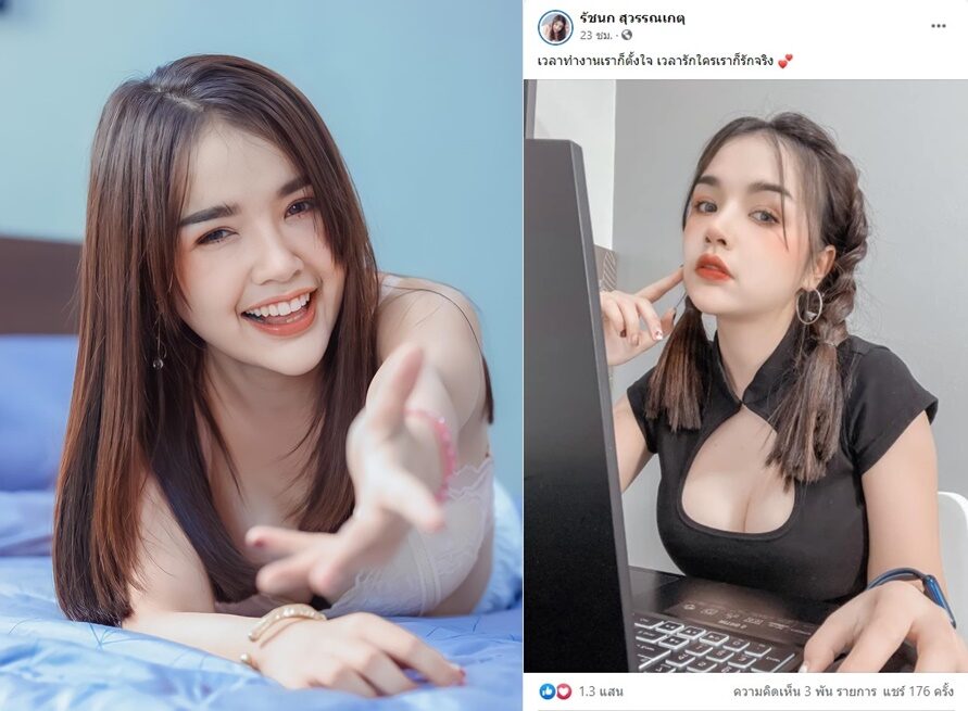 ก่อนจะโพสต์อีกภาพ สวยเซ็กซี่ไม่แพ้กัน ขณะกำลังนั่งทำงาน พร้อมแคปชั่นว่า เวลาทำงานเราก็ตั้งใจ เวลารักใครเราก็รักจริง โดยมีแฟนๆแห่ชมความสวยเซ็กซี่ ถึงกับลั่นนมปังมาก