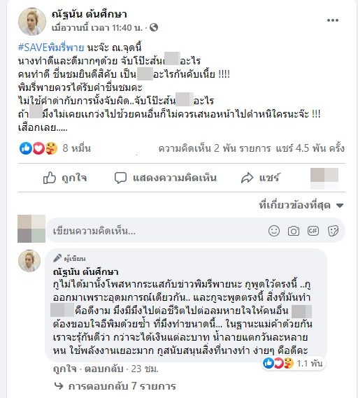 “”#SAVEพิมรี่พาย นะจ๊ะ ณ.จุดนี้ นางทำดีและดีมากๆด้วย จับโป๊ะส้น….อะไร คนทำดี ชื่นชมยินดีสิคับ เป็น…อะไรกันคับเนี้ย พิมรี่พายควรได้รับคำชื่นชมคะ ไม่ใช้คำด่ากับการนั่งจับผิด..จับโป๊ะส้น….อะไร ถ้า…มึงไม่เคยเเกว่งไปช่วยคนอื่นก็ไม่ควรเสนอหน้าไปตำหนิใครนะจ๊ะ!!! เสือกเลย…..”