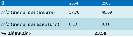 นอกจากนี้บริษัทฯประกาศจ่ายปันผลจากงวดดำเนินงานวันที่ 1 ม.ค. 2564 ถึงวันที่ 31 ธ.ค. 2564 เป็นเงินสดในอัตราหุ้นละ 0.06บาท โดยกำหนดขึ้นเครื่องหมาย XD วันที่ 6 พ.ค. 2565 และกำหนดจ่ายเงินปันผลในวันที่ 26 พ.ค. 2565