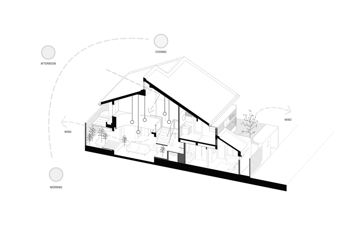 รู้มั้ยว่าอะไรทำให้บ้านหลังนี้โดดเด่น? ก็สกายไลท์ไง! สถาปนิกเลยจัดการเปิดพื้นที่ชั้น 2 สร้างเพดานสูงโล่ง ให้แสงธรรมชาติส่องลงมาถึงพื้นที่นั่งเล่นชั้นล่าง ตื่นมาก็รู้สึกสดชื่น ได้บรรยากาศบ้านเชียงใหม่แท้ๆ แถมยังจัดสรรพื้นที่ให้มีห้องนอน 2 ห้องได้ลงตัว