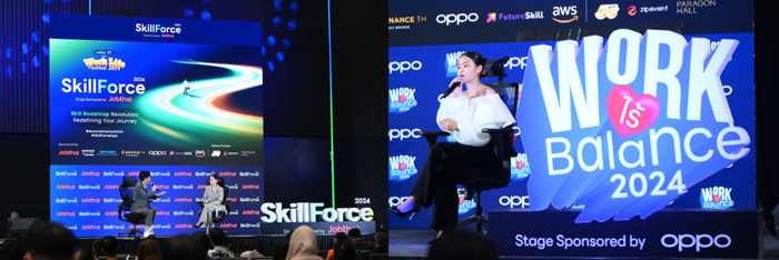 โดยภายในงาน OPPO ได้เข้าร่วมแบ่งปันแนวคิด และทักษะที่ทำให้ OPPO ประสบความสำเร็จในการเป็นหนึ่งในบริษัทเทคโนโลยีชั้นนำได้อย่างรวดเร็ว ในทั้ง 2 เวที ได้แก่ SKILL FORCE STAGE เปิดมุมมองเกี่ยวกับวัฒนธรรมองค์กร และแนวทางการพัฒนาทักษะที่จำเป็นที่ทำให้บริษัทประสบความสำเร็จ และเวที WORK ไร้ BALANCE STAGE การรับมือกับความท้าทาย และการรักษาสมดุลระหว่างชีวิตการทำงานรวมถึงชีวิตส่วนตัว ยิ่งไปกว่านั้น OPPO ได้สร้างสีสันและความสนุกสนานให้กับงานนี้ โดยได้จัดบูธกิจกรรมสุดพิเศษ ชวนผู้เข้าร่วมงานมาถ่ายรูปโปรไฟล์สุดเก๋ ด้วยสมาร์ตโฟน OPPO Find N3 ที่สุดแห่งสมาร์ตโฟนจอพับ เบา บาง ทรงพลัง พร้อมกล้องระดับแฟลกชิปที่พัฒนาร่วมกับแบรนด์กล้องระดับโลกอย่าง Hasselblad ช่วยให้ผู้เข้าร่วมงานได้อัพเดทภาพโปรไฟล์ใหม่ๆ ที่โดดเด่นทันสมัยได้อย่างสะดวก และง่ายดาย