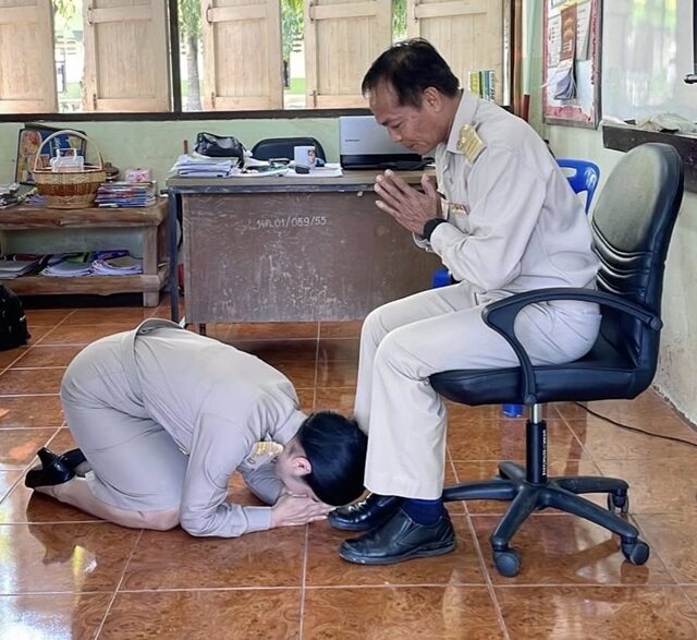 ผอ.เขตฯ ก้มกราบ ครูที่เคยสอน หลังลงพื้นที่เจอโดยบังเอิญ น้ำตาซึมทั้งร.ร.