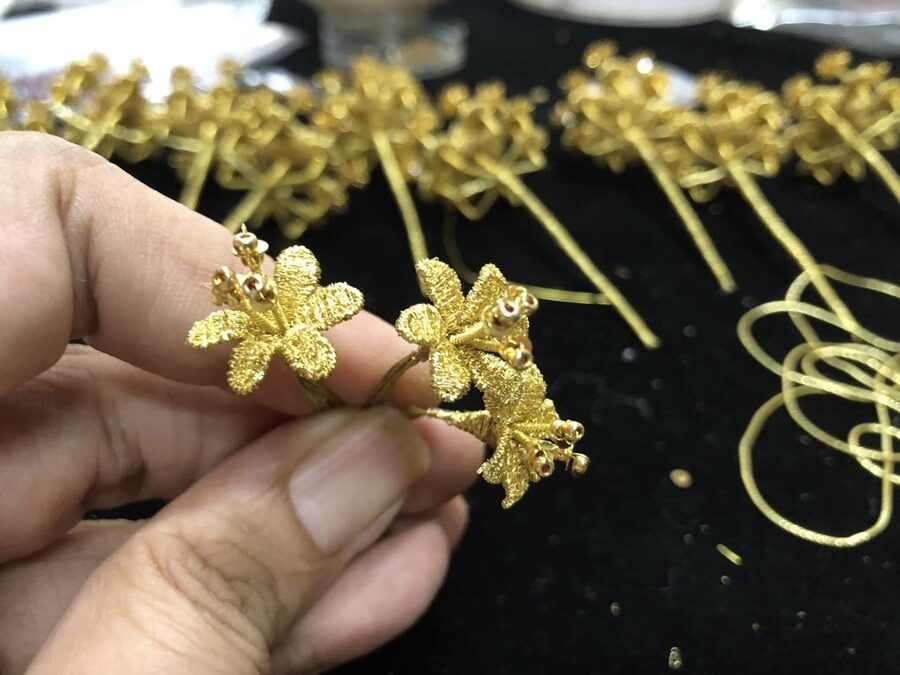 "มงกุฎดอกไม้ไหว (ฮัวก๋วน) ทองคำ ของคุณตรีชฎา มาลยาภรณ์ (คุณปอย) ที่จะใช้วิวาห์บาบ๋า ในวันที่ 1 มีนาคม 2566 ทางกลุ่มหัตถศิลป์ดิ้นโบราณจังหวัดระนอง ได้รับเกียรติให้จัดทำมงกุฎเจ้าสาวบาบ๋าทองคำ โดยวัสดุทั้งหมดทางคุณปอยจัดส่งมาให้ผลิตทั้งหมด ทราบว่าเป็นทองคำแท้ ทั้งดิ้นและดอกไม้ทอง ทางกลุ่มใช้เวลาทำ 3 เดือน รูปแบบมงกุฎทำจากความต้องการภาพสเก็ตของเจ้าสาว เป็นมงกุฎทรงโบราณ ที่มีดอกไม้ละเอียดยิบ ตามภาพเจ้าสาวโบราณ