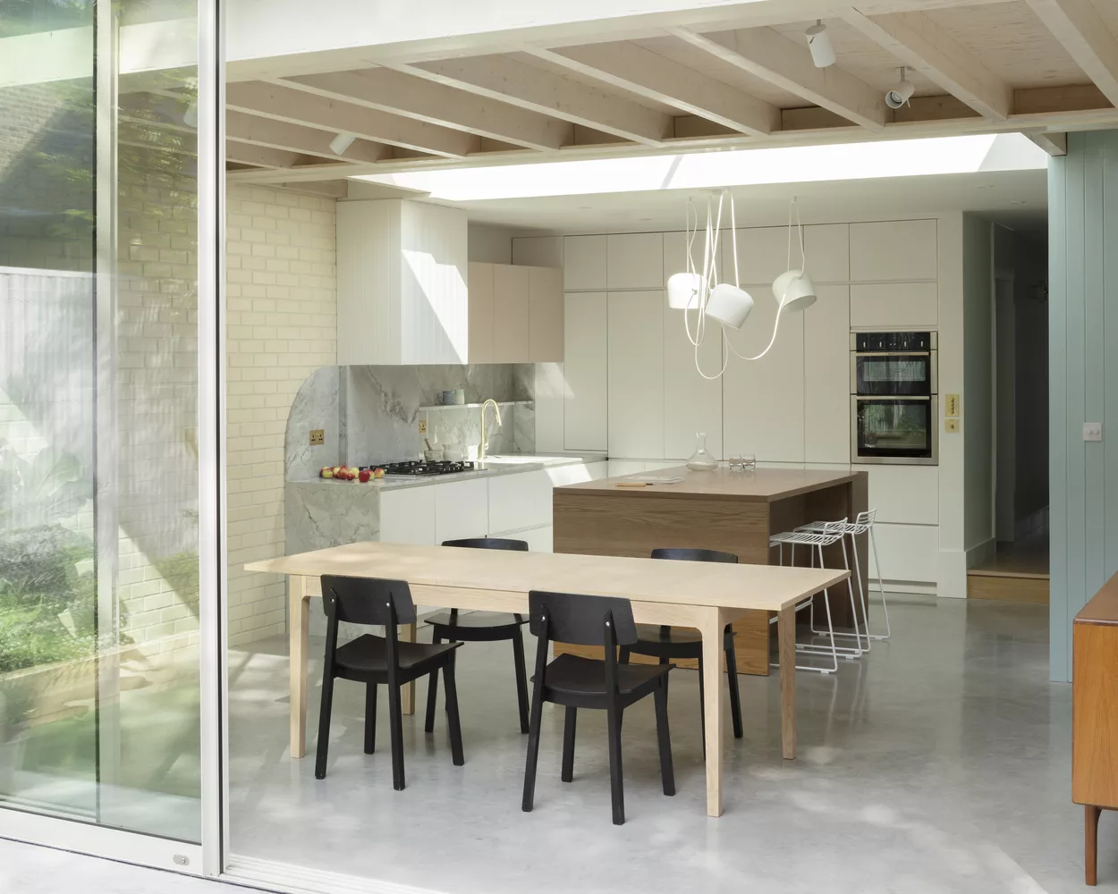 บ้านหลังนี้ได้รับการตกแต่ง ต่อเติมใหม่ ให้มีความทันสมัย แต่ยังคงความคลาสสิคเล็กน้อย โดยทีมออกแบบได้มีการต่อเติม ขยายในส่วนของด้านหลังบ้าน และห้องใต้หลังคาให้มีพื้นที่ใช้สอยมากขึ้น มีการจัดสวนเต็มรูปแบบทั้งสวนด้านหน้ากับด้านหลัง ผนังของในส่วนห้องที่ต่อขยายชั้นล่าง ก่อด้วยอิฐสีครีมอ่อน มีการใช้ประตูกระจกบานใหญ่ เพื่อให้เห็นสวนหลังบ้าน และแสงสว่างสามารถสอดส่องเข้ามาภายในบ้านได้