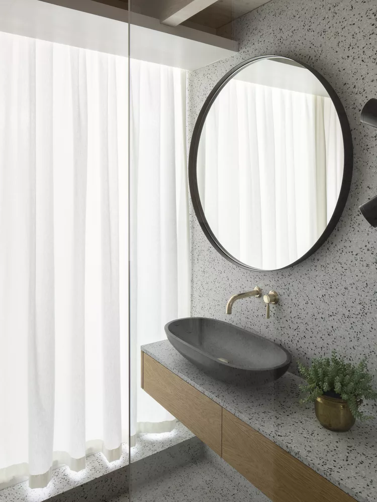 ภายในบ้านมีการตกแต่งแบบสไตล์โมเดิร์น ผสมความวินเทจเล็กน้อยในบางจุด ในส่วนที่ถูกต่อเติมขยายออกมาได้ทำเป็นห้องครัวแบบเปิดโล่ง สามารถรับประทานอาหาร และนั่งพักผ่อนได้ ส่วนห้องครัวจะมีตู้เก็บของสีขาว เคาน์เตอร์ทำอาหารที่สั่งทำจากไม้โอ๊ก และฉากกั้นห้องสีเขียวละมุนๆ ที่ให้ความอบอุ่น นอกจากนี้ห้องต่างๆ ยังได้รับการตกแต่งอย่างมีเอกลักษณ์เฉพาะตัวด้วยสี หรือวัสดุที่ต่างกัน เช่น ห้องนั่งเล่นสีเขียวเข้ม ห้องนอนใหญ่ฉาบปูนไม่ทาสี หรือห้องน้ำที่ปูด้วยกระเบื้องหินขัด ทำให้โดยรวมออกมาสวยและน่าอยู่มากๆ