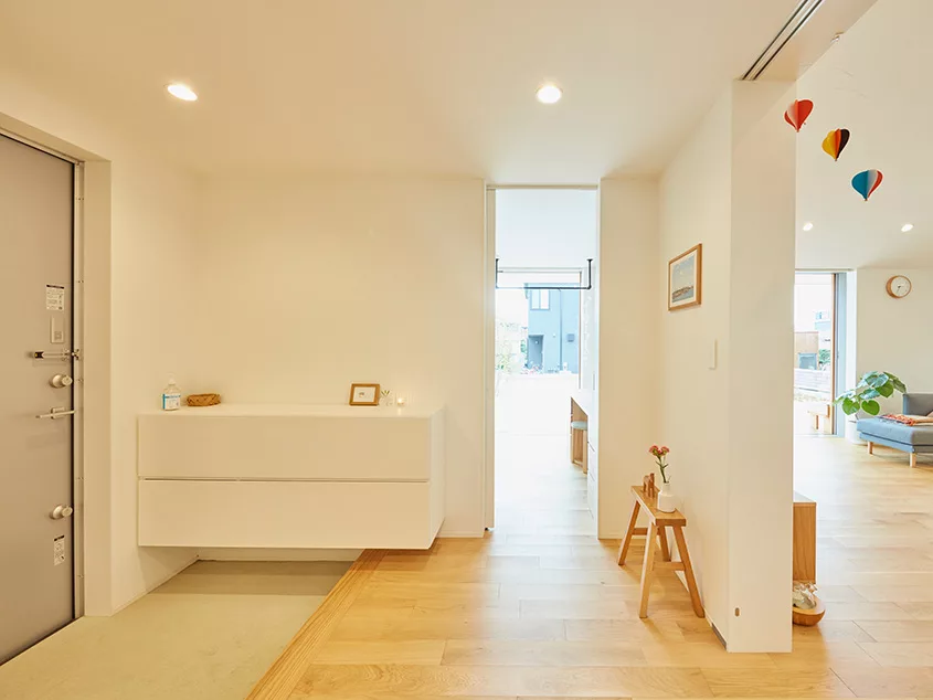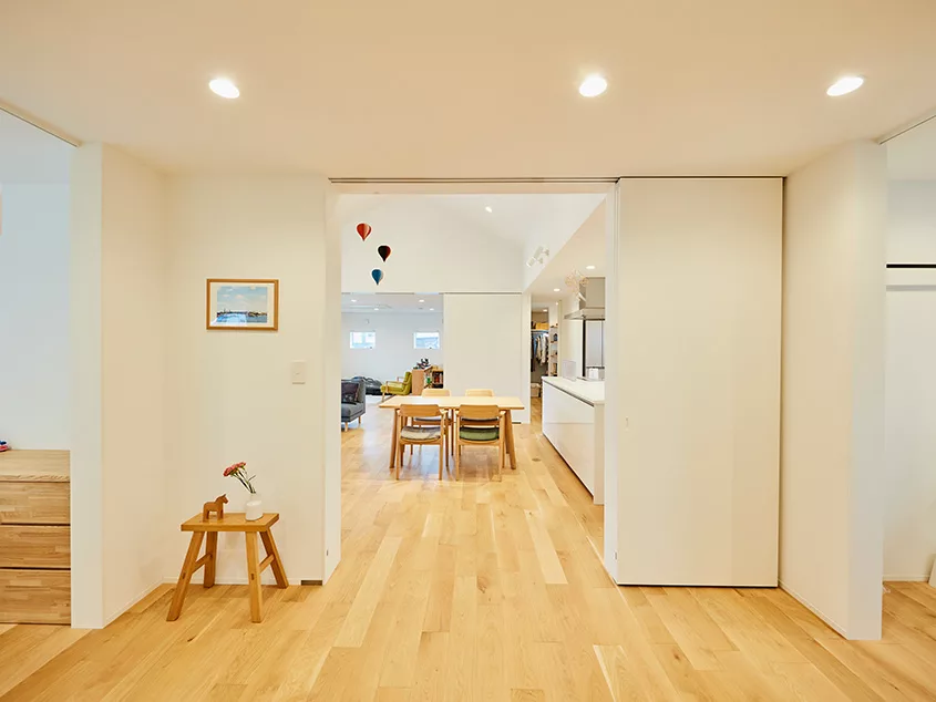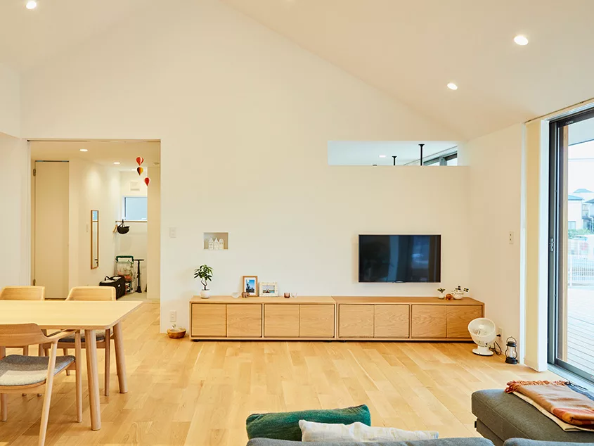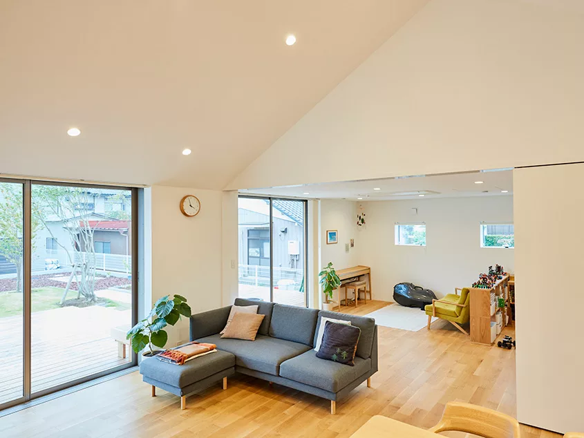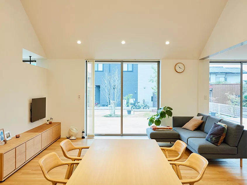 บ้านเดี่ยวหน้ากว้าง สไตล์มินิมอล หลังนี้อยู่ที่เมืองคาซูคาเบะ จังหวัดไซตามะ ประเทศญี่ปุ่น เป็นบ้านที่สามารถมองเห็นสมาชิกในครอบครัวได้อย่างทั่วถึง ตัวบ้านมีการออกแบบอย่างเรียบง่าย ให้ความอบอุ่น กลมกลืนกับธรรมชาติ มีสวนหย่อม สำหรับพักผ่อนหย่อนใจ อีกทั้งยังช่วยเพิ่มพื้นที่สีเขียวให้บ้านร่มรื่นอีกด้วย