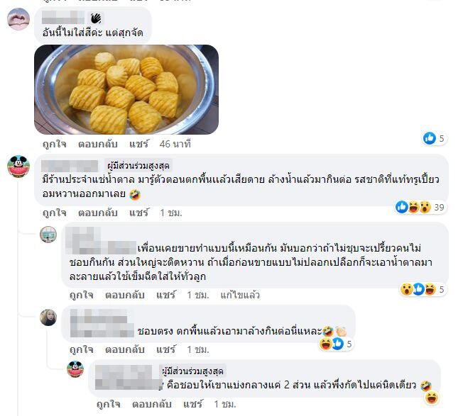 โดยมีคอมเมนต์จากชาวเน็ตที่เข้ามาอธิบายเพิ่มเติมว่า "ในฐานะคนขาย ถามว่าแช่ไหม >>> แช่ครับ แช่ไร >>> แป้งหวานครับ (แต่ไม่เคยผสมสีนะ) ลูกค้า 90% ชอบกินหวานครับ เปรี้ยวหน่อยโดนด่าเลย สับปะรดปอกมาแล้วหวานเลยมีไหม >> มีครับ แต่ต้องสุกจากต้น แต่ชาวสาวเค้าไม่รอสุกหรอกครับ เพราะเวลาขนส่ง ทับๆกันมา มันบี้หมด ขาดทุนป่นปี้"