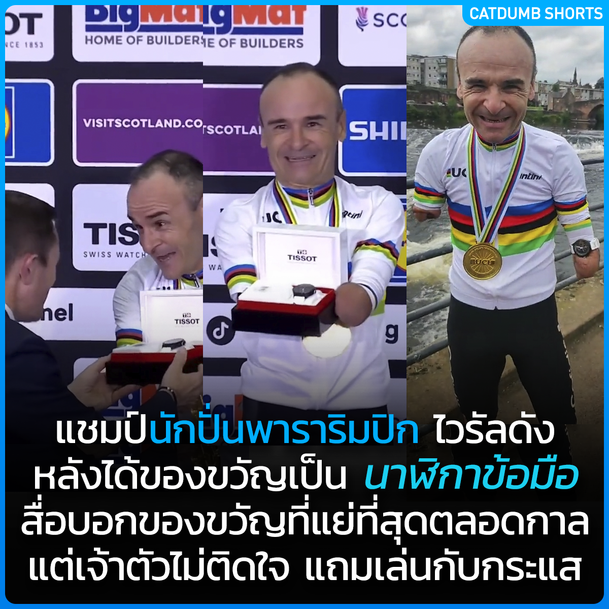 แชมป์นักปั่นพาราริมปิกไวรัลดัง หลังได้ของขวัญเป็น นาฬิกาข้อมือ สื่อบอกของขวัญที่แย่ที่สุดตลอดกาล แต่เจ้าตัวไม่ติดใจ แถมเล่นกับกระแส
