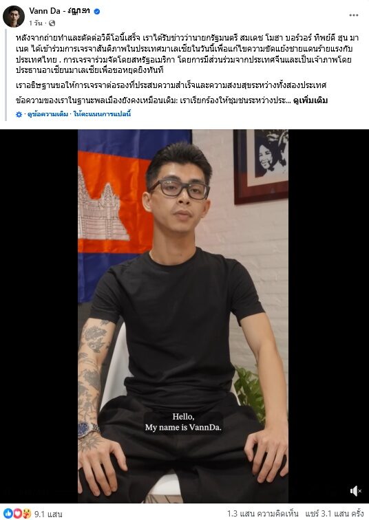 - อ่านข่าว - Vann Da แร็พเปอร์ดังกัมพูชา โพสต์ให้กำลังใจกองทัพในประเทศ แฟนคลับไทยเลิกตาม