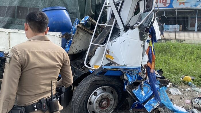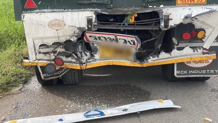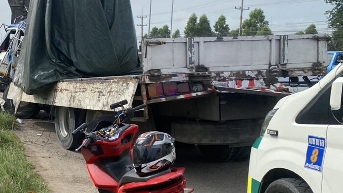รถบรรทุกกระจก พุ่งชนคนเดินเท้าข้างทาง ก่อนเสย22ล้อพังยับ ดับ2ศพ