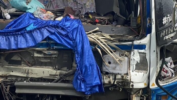 รถบรรทุกกระจก พุ่งชนคนเดินเท้าข้างทาง ก่อนเสียหลักเสยท้าย 22 ล้อพังยับเยิน เสียชีวิต 2 ศพ เจ้าหน้าที่เร่งตรวจสอบกล้องวงจรปิดหาสาเหตุ