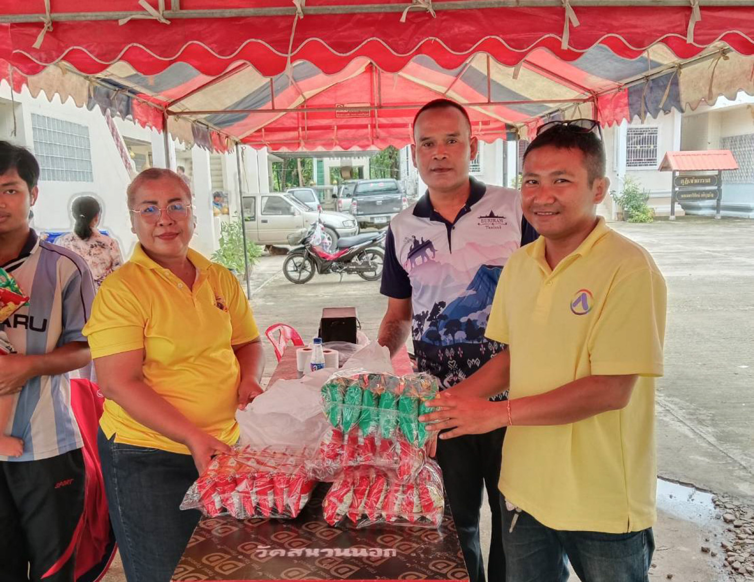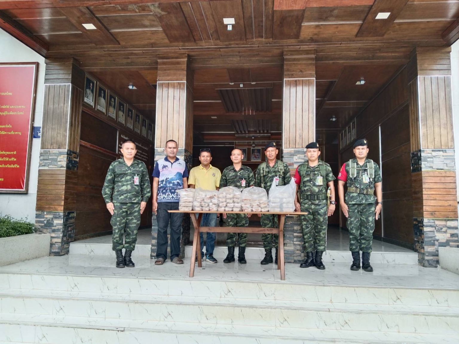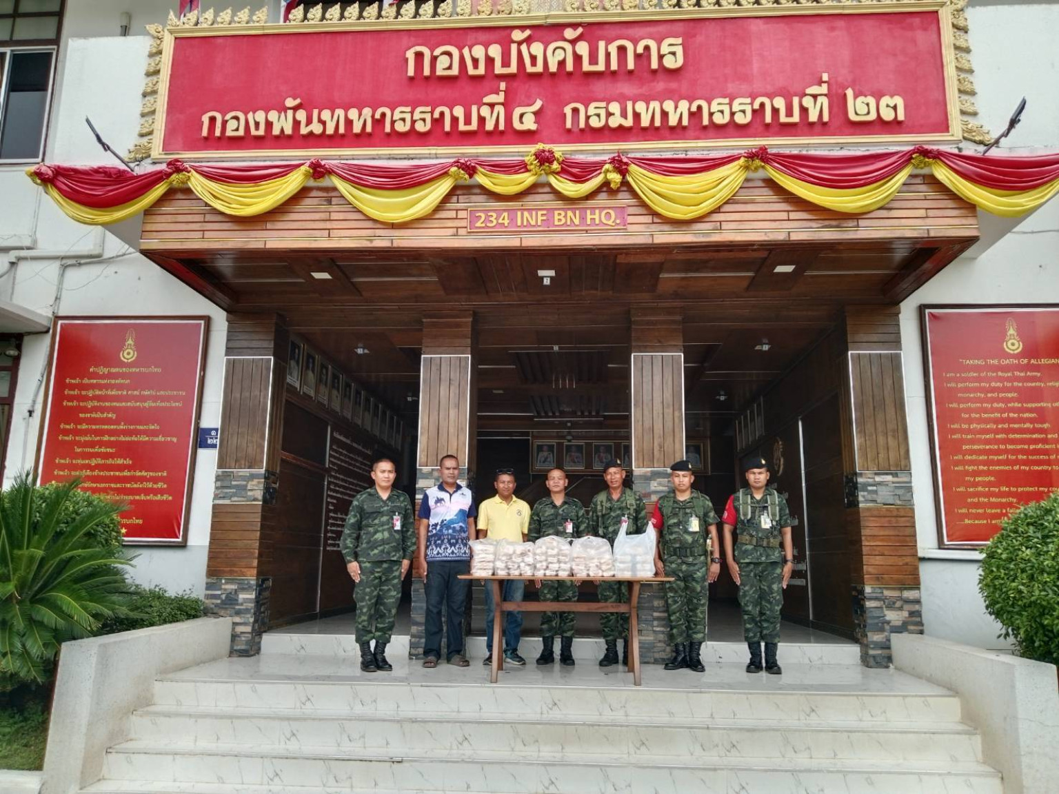 โดยได้เดินทางมอบสิ่งของตามจุดต่างๆ ประกอบด้วย จุดแรก กองพันทหารราบที่4 กรมทหารราบที่ 23 บุรีรัมย์ ขอรับการสนับสนุนข้าว 100 กล่อง ส่งมอบเรียบร้อย