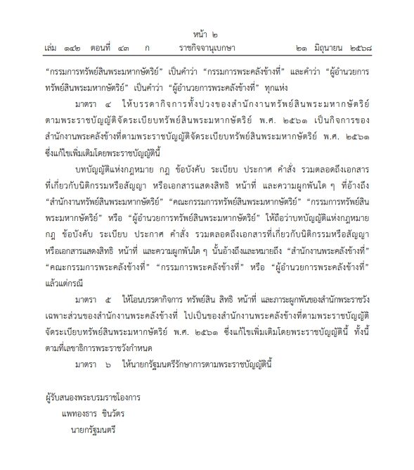 อ่านข่าวต้นฉบับได้ที่ : โปรดเกล้าฯ พ.ร.บ.จัดระเบียบทรัพย์สินพระมหากษัตริย์ (ฉบับที่ 2)