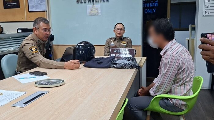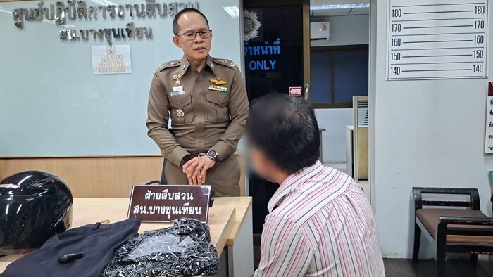 จากการสืบสวนและตรวจสอบจากกล้องวงจรปิดพบว่า ก่อนก่อเหตุคนร้ายได้มีการจอดรถจักรยานยนต์ และส่องเข้าไป ภายในรถของผู้เสียหาย แล้วเมื่อผู้เสียหายลงจากรถ จะขับรถจักรยานยนต์วนมาก่อเหตุลักทรัพย์ดังกล่าว ฝ่ายสืบสวน สน.บางขุนเทียน ลงพื้นที่ตรวจสอบจนทราบว่า รถจักรยานยนต์คันที่ก่อเหตุมาจอดอยู่บริเวณบ้านเลขที่ 180 ซอยเอกชัย 76 จึงติดตามไปจับกุมตัวไว้ได้