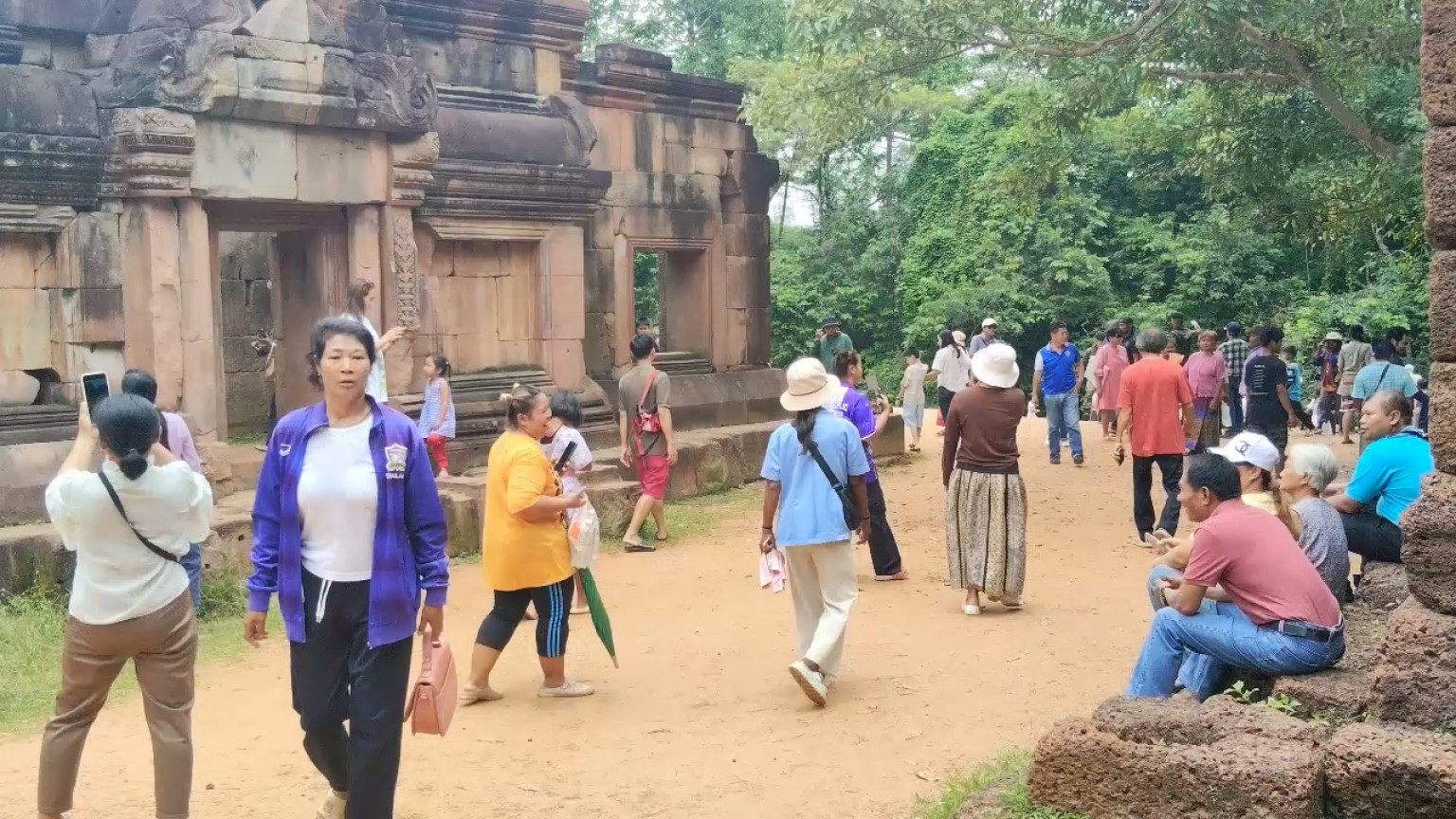 วันที่ 10 กรกฎาคม 2568 ผู้สื่อข่าวรายงานถึงบรรยากาศที่ปราสาทตาเมือนธม ต.ตาเมียง อ.พนมดงรัก จ.สุรินทร์ พบว่า ตั้งแต่ช่วงสายและตลอดทั้งวัน มีประชาชนและนักท่องเที่ยว ที่กลับจากทำบุญตักบาตรในวันอาสาฬหบูชาตามวัดวาต่างๆเสร็จแล้ว ต่างพากันเริ่มทยอยเดินทางเข้ามาเที่ยวชมปราสาทตาเมือนโต๊ดและปราสาทตาเมือนธมอย่างคึกคัก ทำให้รถติดและต้องจอดข้างทางตั้งแต่ปราสาทตาเมือนโต๊ดยาวเหยียดมาจนถึงประสาทตาเมือนธม หลายร้อยเมตร เพื่อเดินเท้าเข้าไปชมปราสาทตาเมือนธมอีกด้วย