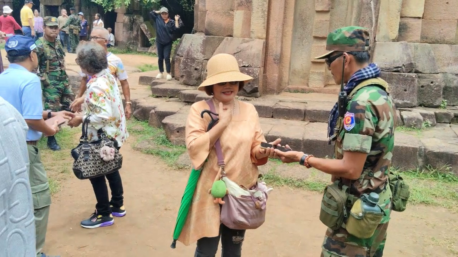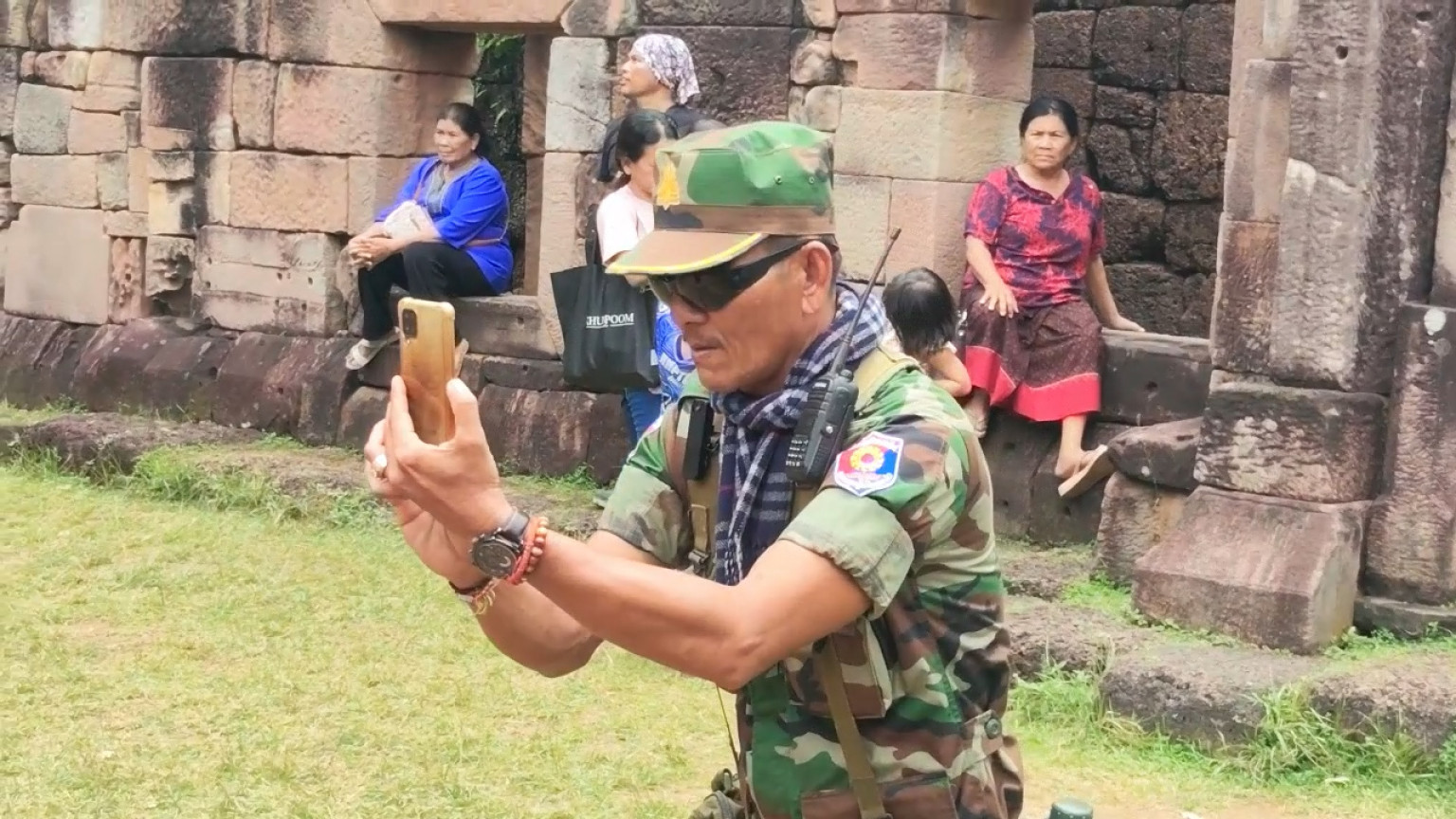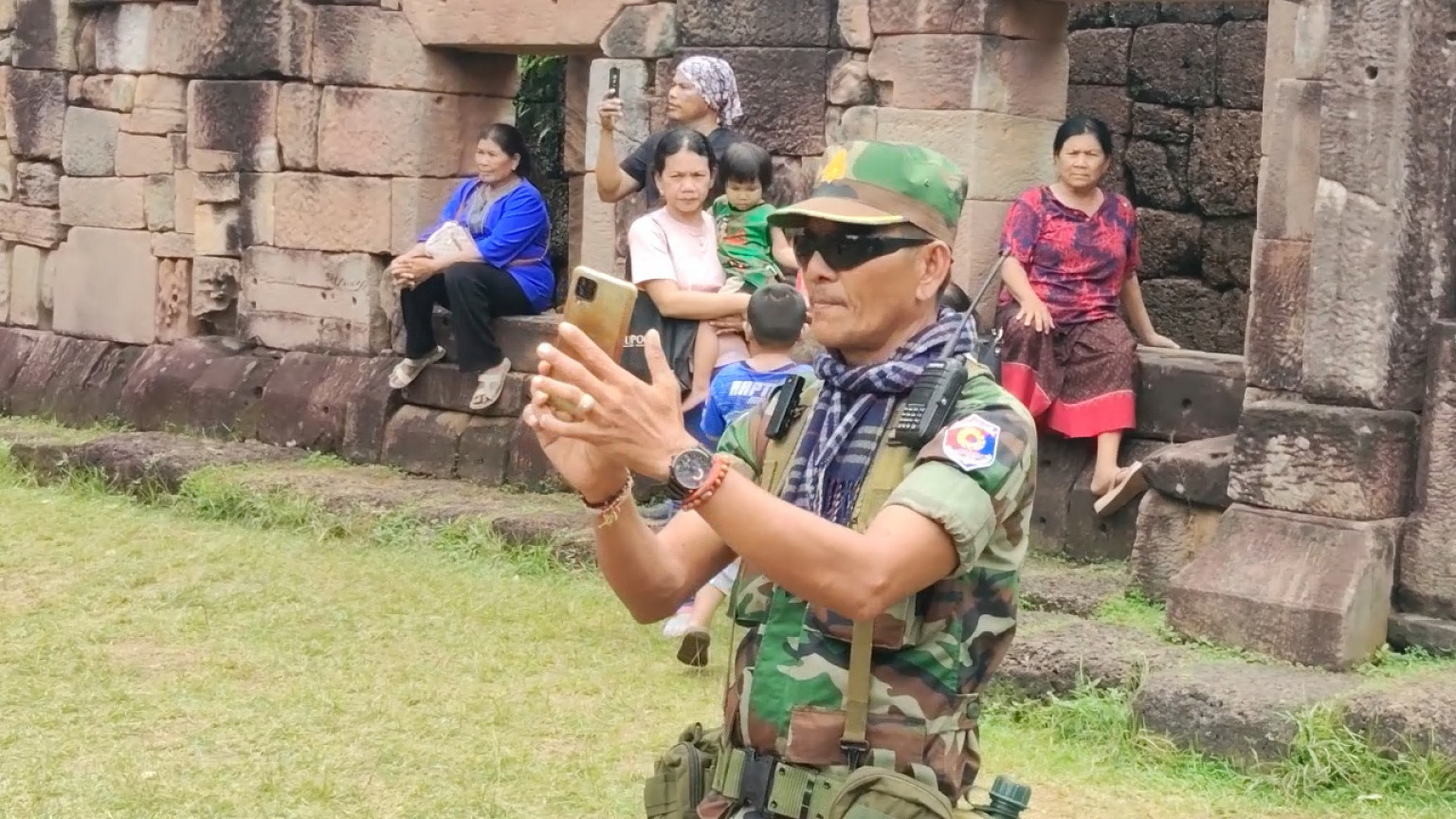 ขณะเดียวกันพบนักท่องเที่ยวสูงวัยชาวไทย ที่พากันมาเที่ยวชม ได้วานให้ทหารกัมพูชา ช่วยเป็นตากล้องเดินตามถ่ายรูปให้ซะอย่างนั้น ซึ่งทหารกัมพูชาเอง ก็ไม่ปฏิเสธ ได้ตั้งท่านับหนึ่งสองสามถ่ายรูปให้บรรดาคุณยายๆชาวไทย ก่อนที่คุณยายจะขอบคุณทหารกัมพูชา ด้วยบรรยากาศที่เป็นกันเองอย่างยิ่ง ระหว่างที่ผู้สื่อข่าวได้ถ่ายภาพทหารกัมพูชาที่เป็นตากล้องอยู่นั้น พบทหารกัมพูชาอีกคนรีบเดินมาสะกิดทหารกัมพูชาที่เป็นตากล้องว่ามีคนแอบถ่ายภาพอยู่อีกด้วย