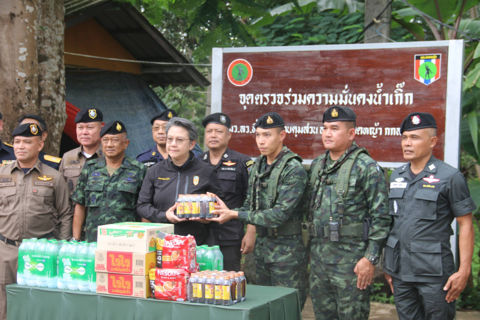 ผู้สื่อข่าวรายงานว่า เมื่อวันที่ 8 กรกฎาคม 2568 เลขาธิการคณะกรรมการป้องกันและปราบปรามยาเสทติด (เลขาธิการ ป.ป.ส.) มอบหมายให้ นางสาวอารีภักดิ์ เงินบำรุง รองเลขาธิการคณะกรรมการป้องกันและปราบปรามยาเสพติด (รองเลขาธิการ ป.ป.ส.) พล.ต.เฉลิมเกียรติ ทองศิริ รองผู้บัญชาการหน่วยบัญชาการสกัดกั้นและปราบปรามยาเสพติด สารตั้งต้นและเคมีภัณฑ์ พ.อ.กิตินันท์ รัสมี รองหัวหน้าฝ่ายการข่าวหน่วยบัญชาการสกัดกั้นและปราบปรามยาเสพติด สารตั้งต้นและเคมีภัณฑ์ชายแดนภาคตะวันตก (นบ.ยส.17) เดินทางมาตรวจเยี่ยมการปฏิบัติงานการสกัดกั้นยาเสพติดตามแนวชายแคนภาคตะวันตก พื้นที่จังหวัดกาญจนบุรี เพื่อติดตามผลการดำเนินงานด้านการสกัดกั้นการลักลอบนำเข้าและลำเลียงยาเสพติดตามแนวชายแคนจังหวัดกาญจนบุรี ตามปฏิบัติการสกัดกั้นและปราบปรามยาเสพติด"Seal Stop Safe“ผนึกกำลังอำเภอที่ติดแนวชายแดน หน่วยบัญชาการสกัดกั้น และปราบปรามยาเสพติด สารตั้งต้นและเคมีภัณฑ์ชายแดนภาคตะวันตก (นบ.ยส.17) ณ บ้านด่านพระเจดีย์สามองค์ อ.สังขละบุรี จ.กาญจนบุรี