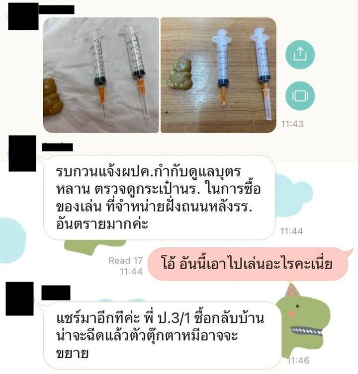 อ่านข่าวต้นฉบับได้ที่ : เพจดังเตือน ของเล่นหลังโรงเรียน เอาเข็มฉีดยามาขาย ห่วงอันตรายต่อเด็ก